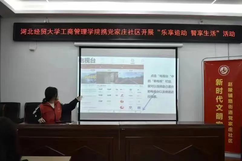 紧接着,志愿者林馨悦向大家详细介绍了学习强国APP,从而帮助老年人可以更加方便地使用手机来了解国内新闻、惠民政策、生活技巧等。志愿者们在宣传推广学习强国APP的过程中,还帮助老人完成注册并加入所在社区,提高了“学习强国”学习平台的知晓率与使用率。活动的最后,志愿者们主动与老人进行暖心互动,询问他们对本次活动的看法,并积极为他们答疑解惑,场面温馨。
