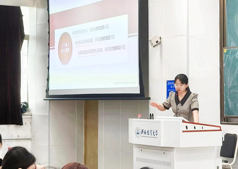 学生党支部书记赵靓丹以习近平新时代中国特色社会主义思想为主题,详细讲解了习近平新时代中国特色社会主义思想确立的时代背景、主要内容、历史地位以及如何学好用好习近平新时代中国特色社会主义思想。习近平新时代中国特色社会主义思想是当代中国马克思主义、二十一世纪马克思主义,是中华文化和中国精神的时代精华。她鼓励同学们在今后的学习和生活中,自觉运用好习近平新时代中国特色社会主义思想蕴含的领导方法、思想方法和工作方法,从习近平新时代中国特色社会主义思想中汲取奋发进取的智慧和力量,努力提高攻坚克难、化解矛盾、驾驭复杂局面的能力。坚定拥护“两个确立”,坚决做到“两个维护”,立足自身,强化担当,以更加饱满的状态和踏实的作风投入社会主义现代化国家的建设中。