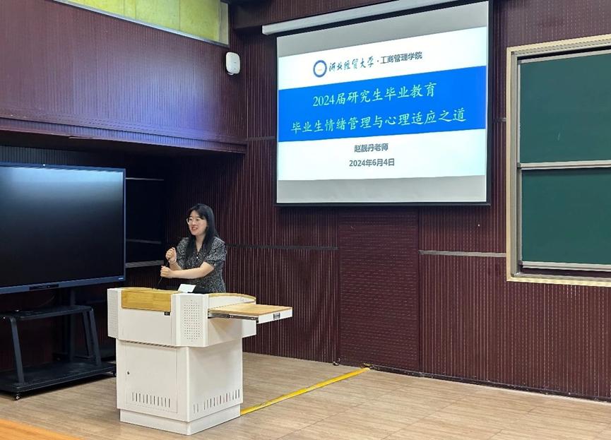 情绪,是心理健康的“睛雨表”。为进一步加强对毕业生心理健康的教育引导,提升情绪调节与管理能力。6月4日,必赢官网开展“毕业生情绪管理与心理适应之道”主题讲座。讲座由必赢线路检测中心辅导员赵靓丹老师主讲,全体学术型研究生参加。她强调毕业生就业心理的调试是一个复杂而重要的过程,并结合自身求职工作经历,对即将毕业的同学们提出三点希望:一正确定位自我,树立合理的就业观念;二调整心态,增强自信;三制定合理的就业规划,积极行动;四学会面对挫折,保持积极的心态。