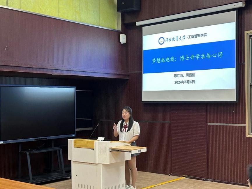 为充分发挥优秀毕业生的榜样引领作用,引导研究生尽早做好学业和职业规划,学院于6月4日举行了“梦想起跑线:博士升学准备心得”“公途导航:毕业生考公策略分享会”“职场启航:学长学姐的就业智慧”经验分享活动。活动由学院研究生辅导员李建林主持,全体学术型研究生参加。会上,毕业生代表陈汇涓分享首都经济贸易大学博士申请经验、周嘉怡分享河北工业大学博士申请经验、王紫云分享国家公务员考试备考经验、侯仰世与周云昇分享国企求职准备经验。