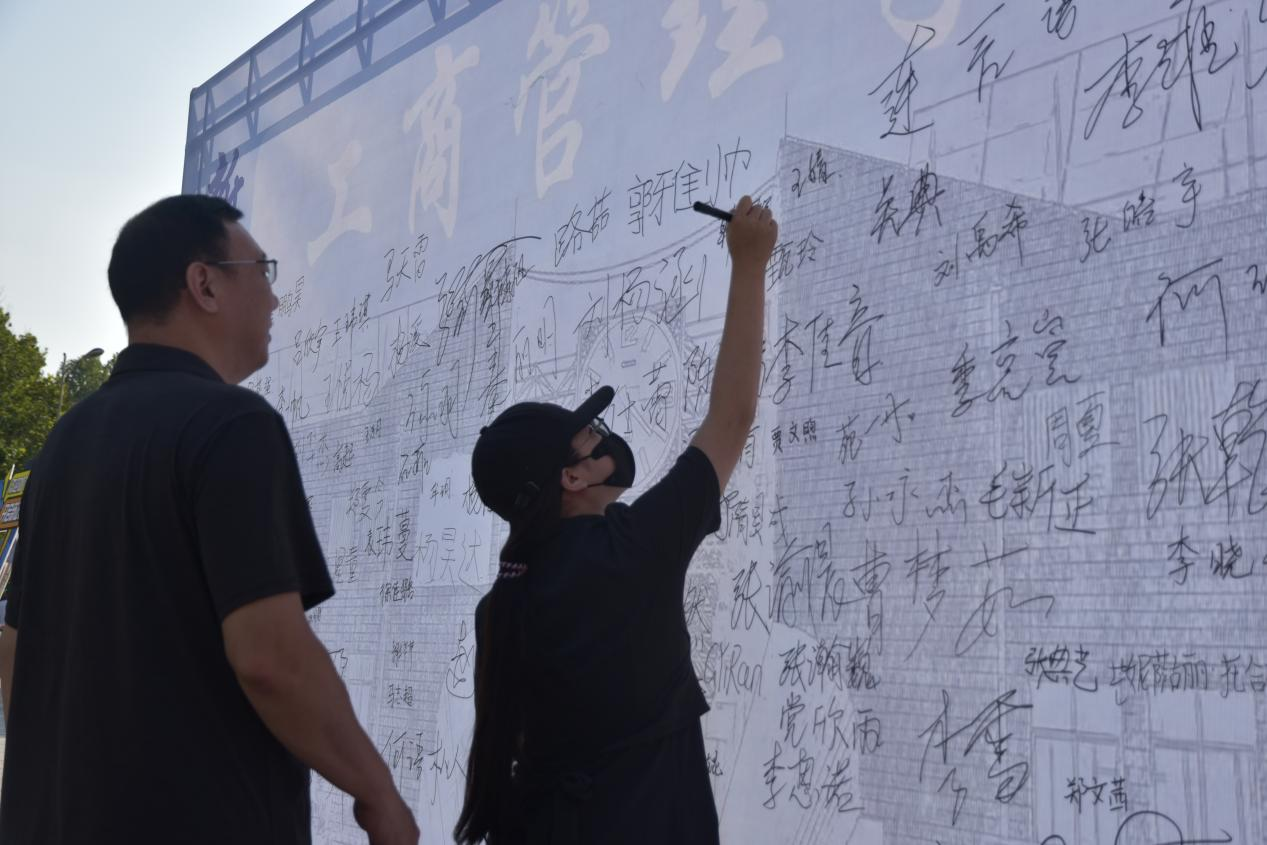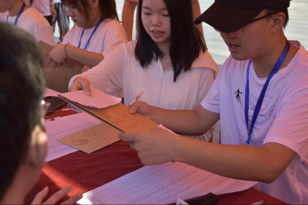 图书馆前是志愿者们忙碌的身影,是签名墙上留下的串串笔迹,是新同学们脸上洋溢的笑脸与期待。大家纷纷在签名墙边合影留念,将这难忘的一刻定格。