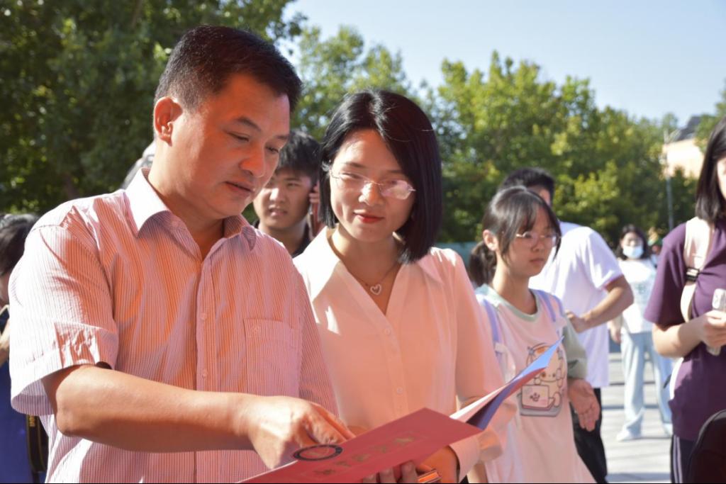 学校及学院领导莅临现场,逐一了解各专业新生的报到情况,对迎新工作做出悉心指导,并与新生辅导员亲切交流,叮嘱他们将对新生的关怀要落实、落细;与新生亲切交流,希望大家尽快转变角色,适应大学新环境、融入校园新生活,既要有“明德 致知”的追求,更要有“凝心 力行”实践,努力成长为堪当民族复兴重任的时代新人。