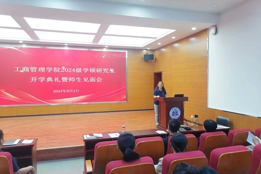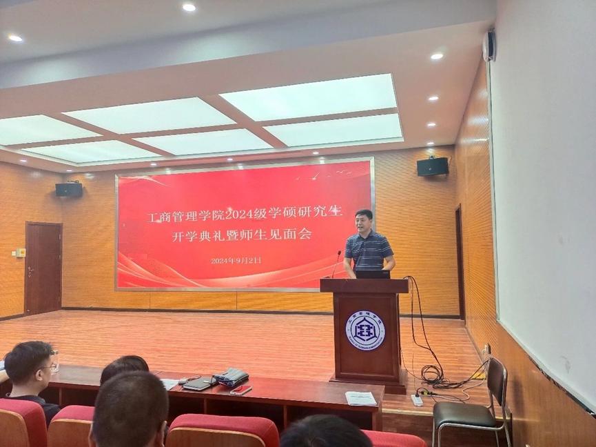 首先,李桂荣院长对2024级新生表示热烈欢迎,并介绍了工商管理专业的基本情况、招生情况和培养情况。用“探索”“平台”“信念”三个关键词表达了对全体新生未来的学习、生活和社会实践等方面的期望。探索,是人类进步的永恒动力,也是学院不断前行、追求卓越的核心精神;平台,是梦想起飞的翅膀,学院一直致力于为同学们搭建起通往成功与辉煌的桥梁;信念,是前行的灯塔,希望同学们用实际行动诠释“严谨为师,勤奋为学,诚信为人”的校训精神。