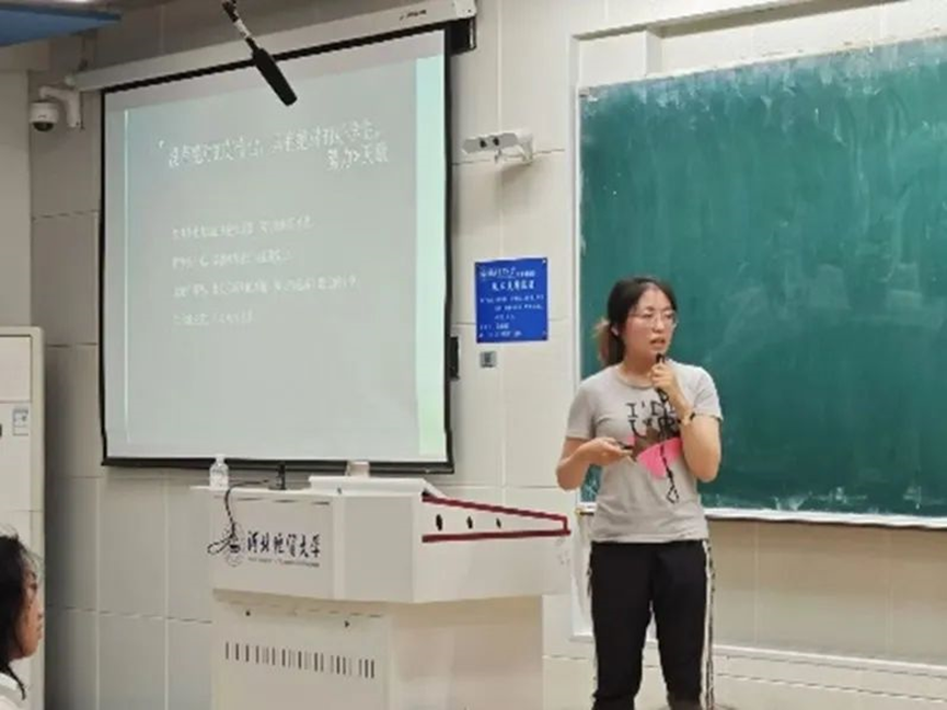 会议伊始,马源向大家展示了她自上大学以来在各方面所取得的优异成绩。其后,她从高考后的生活及心路历程谈起,结合大一一年的成长经历,讲述了她在各类课外活动中取得的收获。她表示,课外活动不仅仅是评优加分,更重要的是能力提升和价值实现。紧接着,她向大家提出两点建议:一是大一学生正处于大学生活的迷茫期,但要始终保持积极进取的心态,在不断前进中找到明确的方向。二是成绩并不是唯一,要勇于尝试新事物,不断提升自己的综合素质。