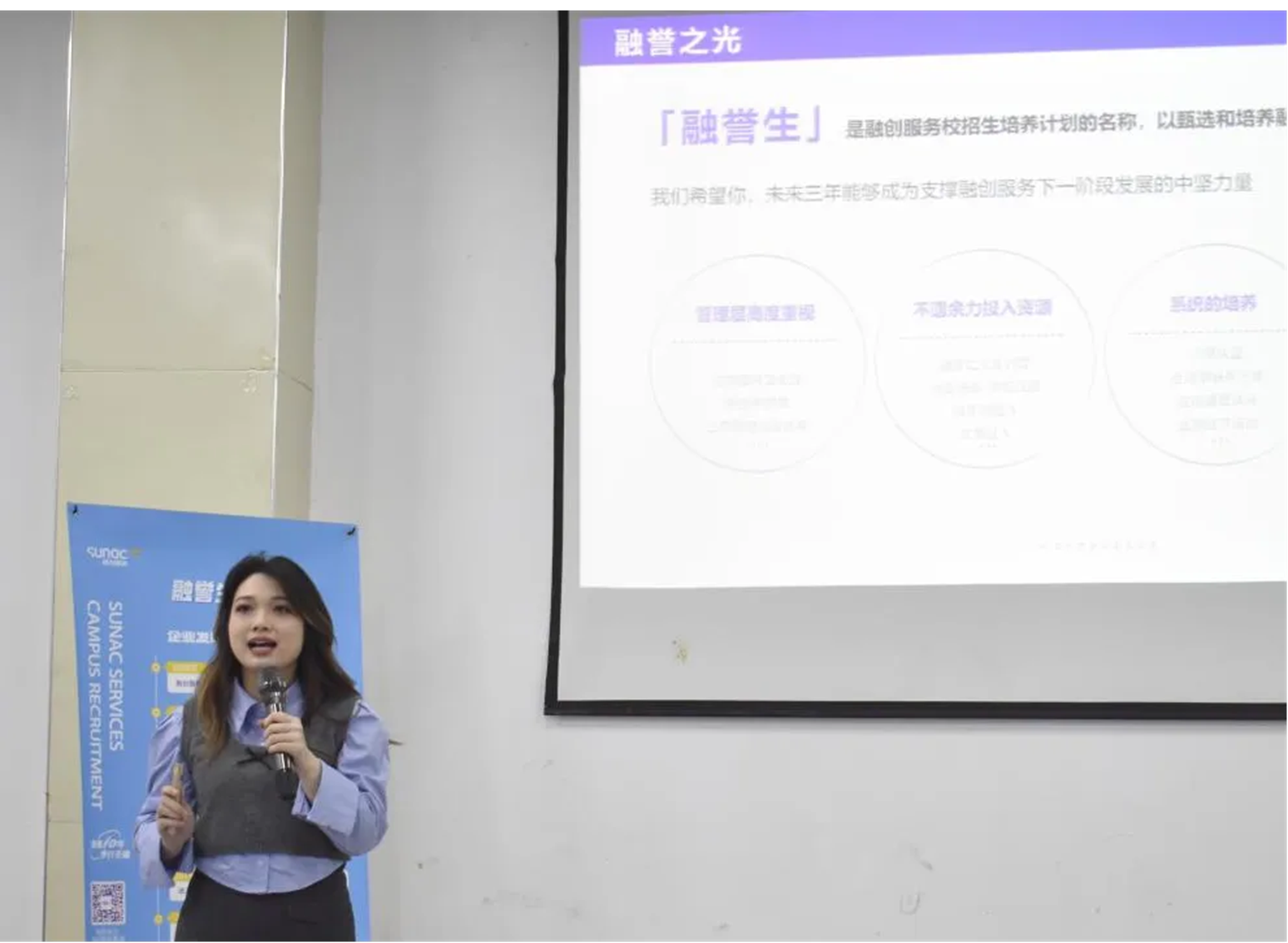为进一步推进校企合作供需对接,为2025届毕业生提供优质的就业岗位,助力同学们实现高质量就业,10月22日下午,必赢线路检测中心于学校就业报告厅举办融创服务2025融誉生校园招聘宣讲会,必赢官网党委副书记宋欣、就业联络员赵靓丹出席,2025届部分毕业生参加。