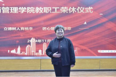 最后,荣休教师上台发言。她们表达了对学院和师生们的不舍以及对过往岁月的怀念,并借此机会勉励同仁们继续秉持对知识的敬畏之心和探索精神,坚守教育的初心,为培养更多优秀人才而不懈努力。同时,她们也对学院一直以来的支持与关怀表达了由衷的感谢,对学院未来的发展建设表达了美好的祝愿。