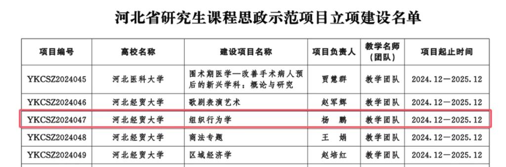 近日,河北省教育厅公布了2024年省级研究生课程思政示范项目立项建设名单。