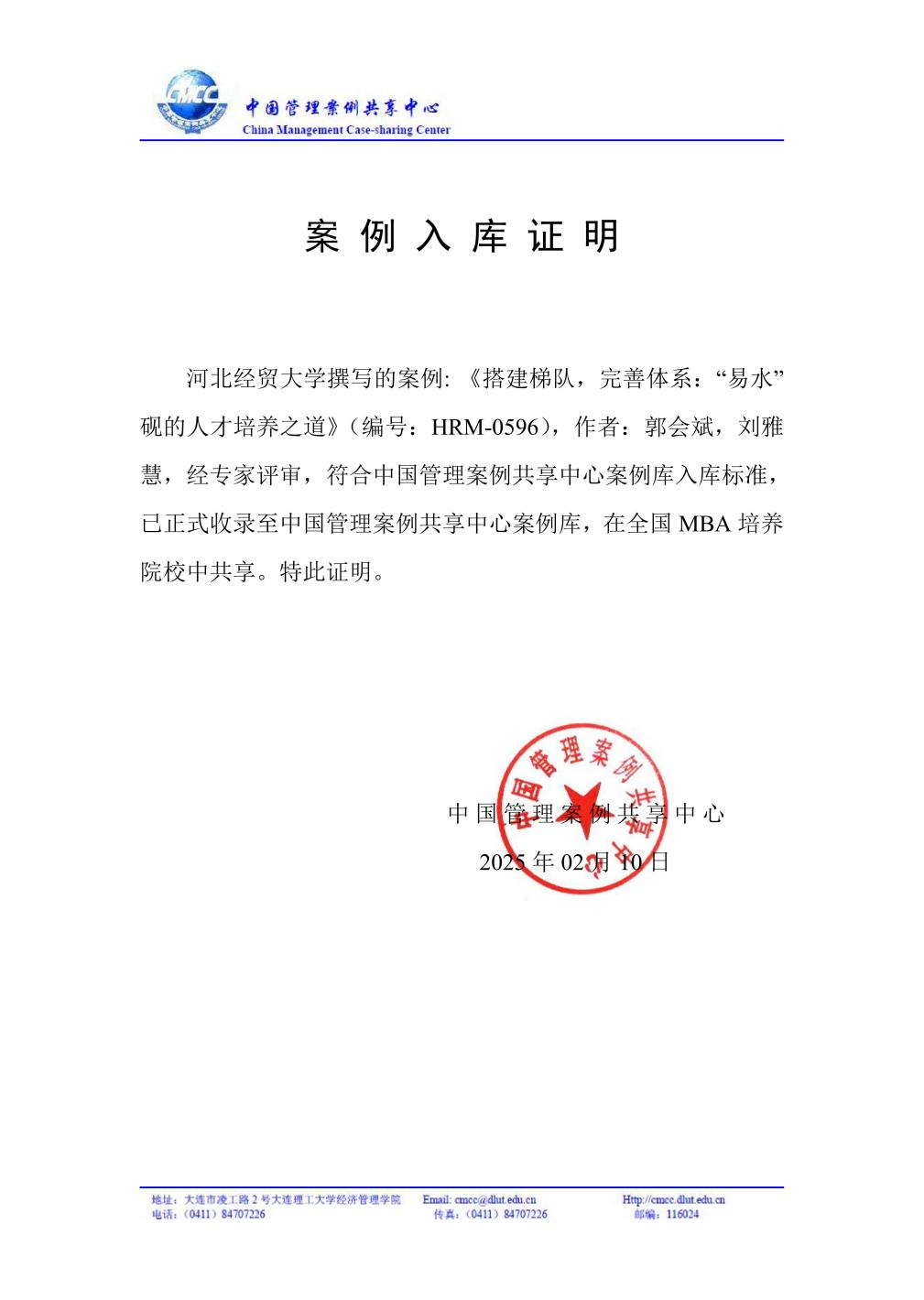 近日,必赢线路检测中心教授郭会斌和2023级工商管理学研究生刘雅慧撰写的教学案例《搭建梯队,完善体系:“易水”砚的人才培养之道》(编号:HRM-0596)入选中国管理案例共享中心案例库。