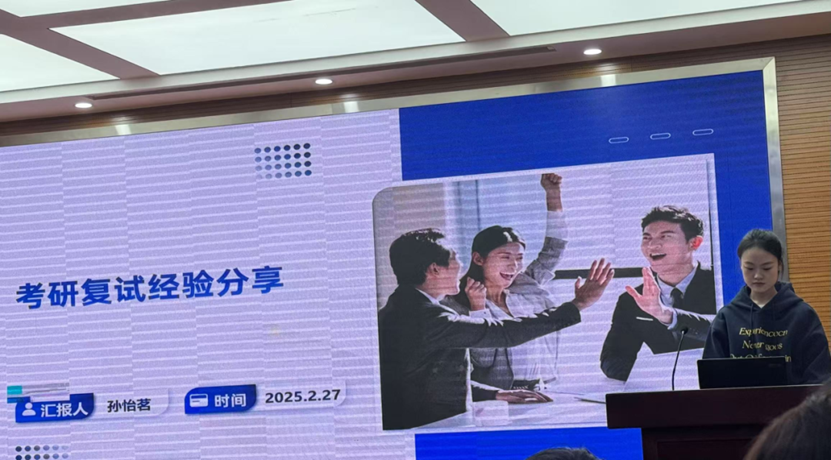 随后,研究生代表结合自身经历,详细分享了复试备考经验。他们强调,专业知识要扎实,同时要关注学科前沿,展现深刻见解;心理准备上,建议通过模拟面试和互相练习增强自信,保持积极心态。互动环节中,同学们围绕口语练习、时间分配、调剂准备及面试技巧积极提问,现场气氛热烈,同学们纷纷表示受益匪浅,对复试备考有了更清晰的方向。