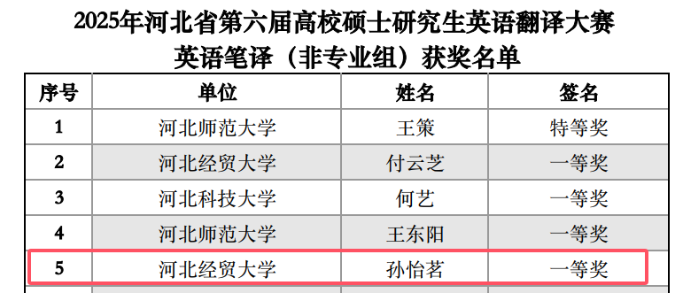 近日,河北省第六届高校硕士研究生英语翻译大赛决赛在唐山顺利落下帷幕。必赢官网2024级研究生孙怡茗在此次比赛中获得非英语专业笔译组一等奖。