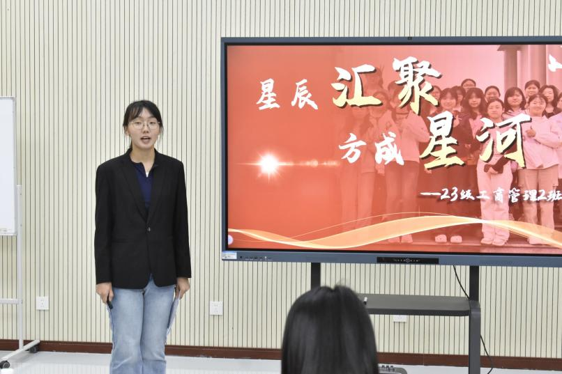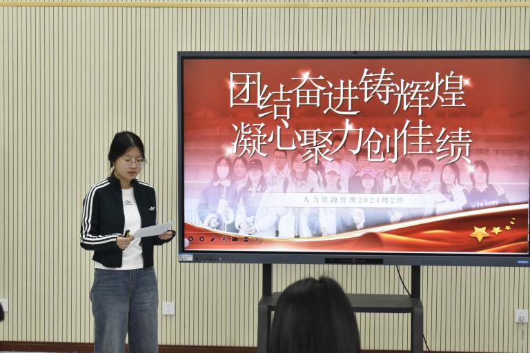 活动伊始,主持人杨佳烨对莅临现场的各位领导、评委老师及学生代表致以热烈欢迎,并简要介绍了本次先进班集体评选活动的目的、意义、评选标准与流程。在展示环节,2023级市场营销2班等竞选班级发言人依次上台,围绕思想建设、学业发展、志愿服务与班级氛围等多个维度,全面呈现了各班在集体建设中所取得的丰硕成果。他们结合生动鲜活的案例与详实数据,不仅展现了扎实的学风与积极的思想面貌,更分享了班级在志愿服务与社会实践中的感人故事,以及温馨融洽、互助共进的班级氛围,充分彰显了新时代大学生团结奋进的班级氛围以及担当有为的社会责任感。