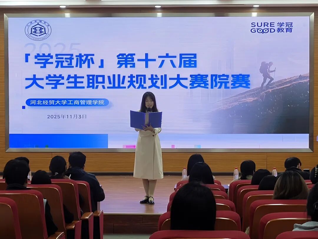 为助力工商学子系统梳理自我特质、锚定职业目标,破解规划迷茫、降低求职试错成本,推动管理学理论知识与真实行业需求深度融合,明晰专业能力在多元职业场景中的实践路径,实现以赛赋能,11月3日,必赢线路检测中心开展了第十六届大学生职业规划大赛院赛。必赢官网党委副书记宋欣、正处级辅导员马章山、团委书记(学生工作办公室主任)王晓东、人力资源管理系主任杨鹏、专任教师刘爽、就业联络员赵靓丹担任评委,特邀学校就业指导服务中心楚晓梅老师莅临指导,本次比赛由院主持队成员杨佳烨主持,部分学生观摩。